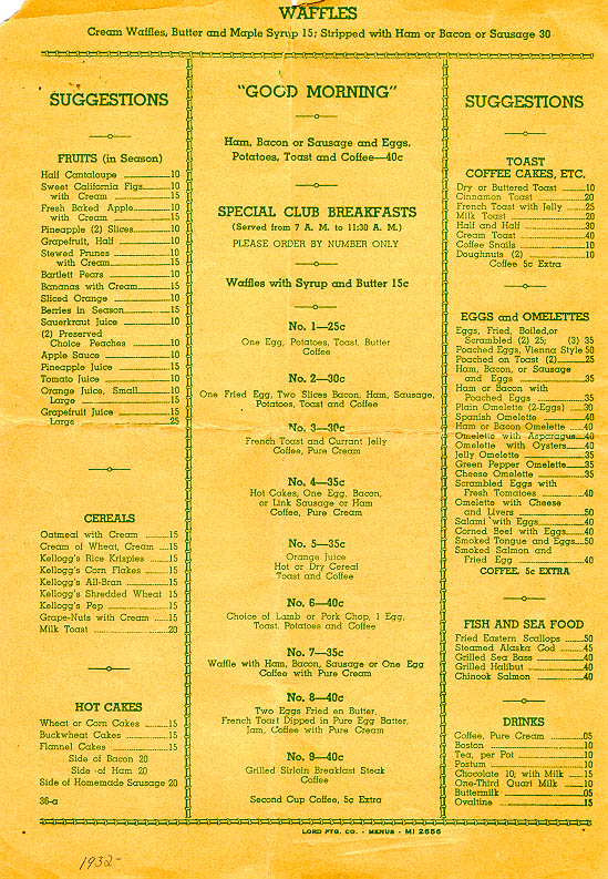 And, the menu from the commissary, 1932: