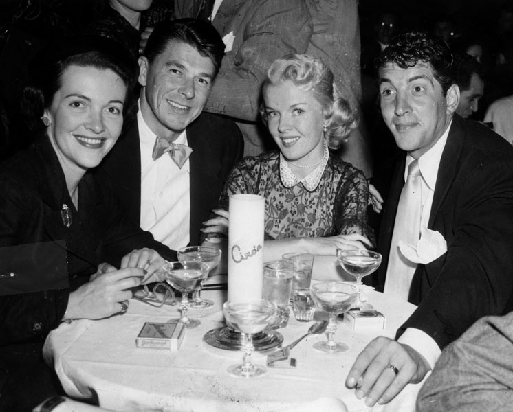 February 23rd, 1952. Nancy Davis, and her soon to be husband, Ronald Reagan, at Ciro’s celebrating with Jeanne and Dean Martin.
